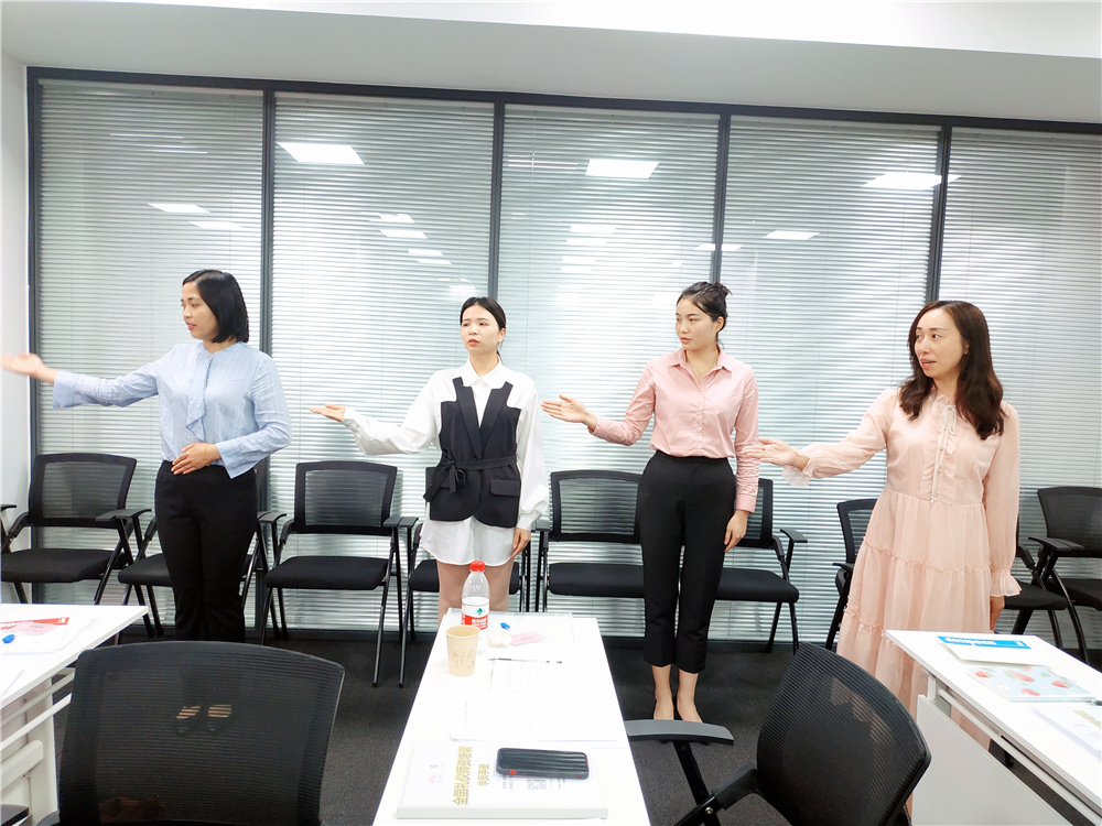 時(shí)淑妍老師為學(xué)員們講授了作為禮儀培訓(xùn)師職業(yè)風(fēng)采的禮儀細(xì)節(jié),并讓學(xué)員們逐一練習(xí),通過指導(dǎo)力求讓每位學(xué)員都能盡快掌握禮儀培訓(xùn)師的現(xiàn)場授課的風(fēng)采及技巧。