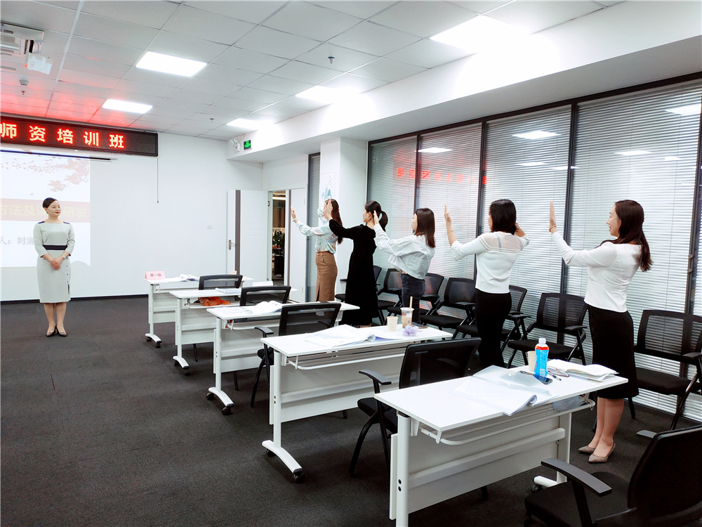 學(xué)員們進(jìn)行禮儀培訓(xùn)師宣誓儀式