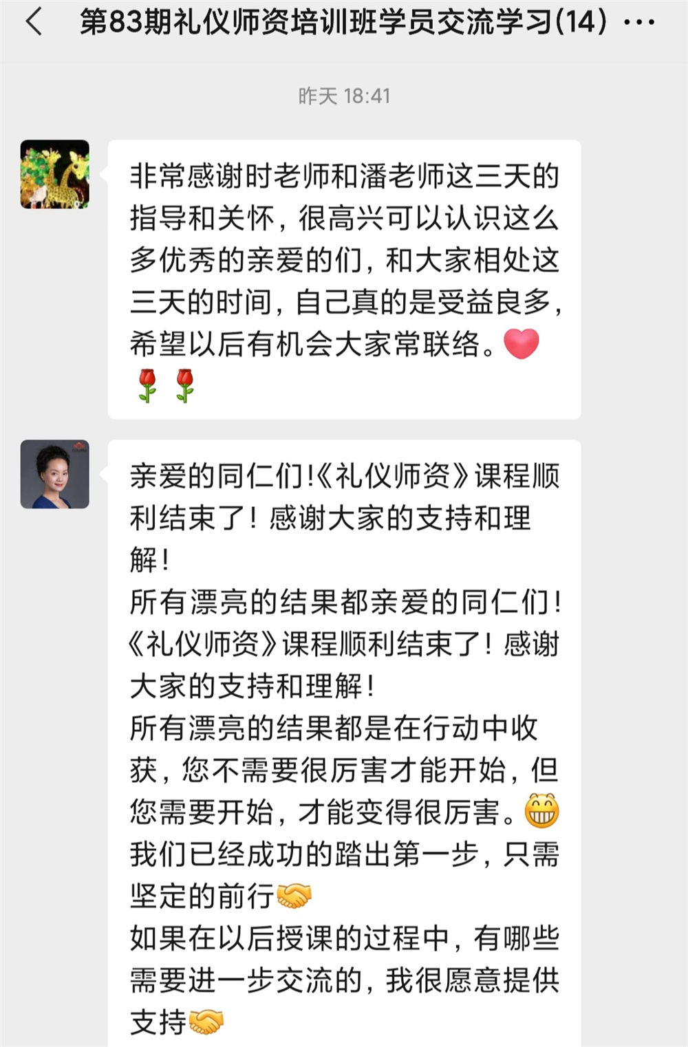 2021年第83期《全國禮儀師資培訓(xùn)班》為期三天兩晚的培訓(xùn)學(xué)習(xí)圓滿結(jié)束!感謝全體學(xué)員對本期課程與教學(xué)工作的積極配合、支持與關(guān)注!